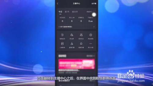 页面翻转到主播中心之后,在界面中找到粉丝群并点击。