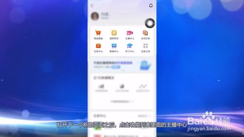打开下一个新的页面之后,点击功能列表里面的主播中心。