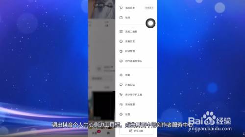 调出抖音个人中心侧边工具栏,点击界面中的创作者服务中心。