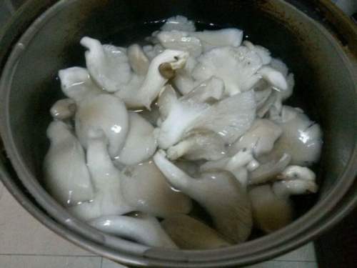 5排骨焯水和姜,水入煲煲35分钟,加入蘑菇和豆腐煲多10分钟