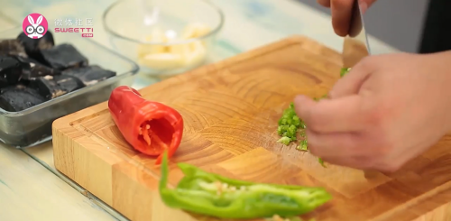1将半个青椒剁碎成末。