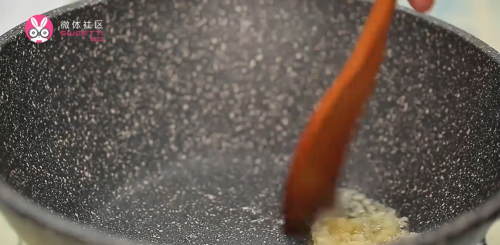 4锅中加少许油,放入蒜末炒香。