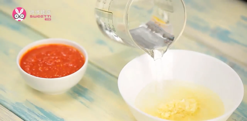 5蒜末盛入碗中倒入500ml水。