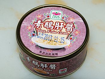 4打开罐头素鹅肝酱,放入西点的方型慕斯模具中,压紧密成型,取出方型慕斯模具,成方形素鹅肝酱。