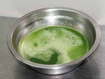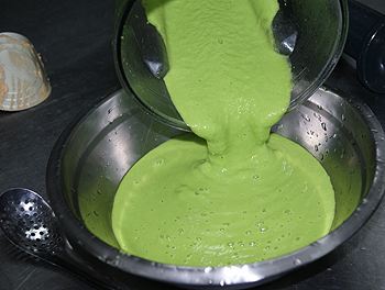 1有机豌豆放入果汁机中粉碎,成青豆泥。