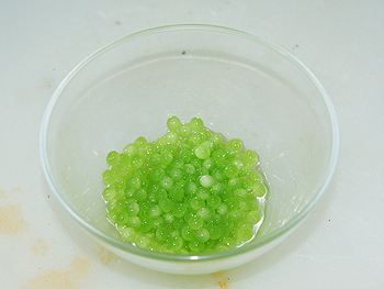 6捞起后用清水浸泡保存即成黄瓜汁鱼子酱。