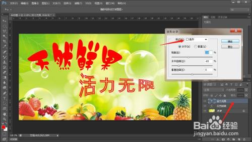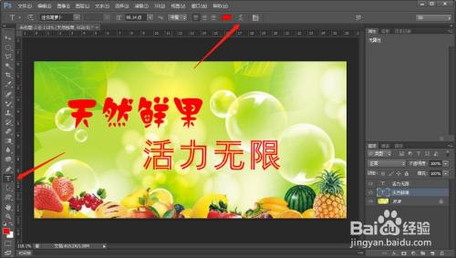 现在选择一个需要变形的字体图层,在工具栏中选择文字的工具按钮,在文字工具的选项栏中可以看到创建文字变形的选项,点击一下
