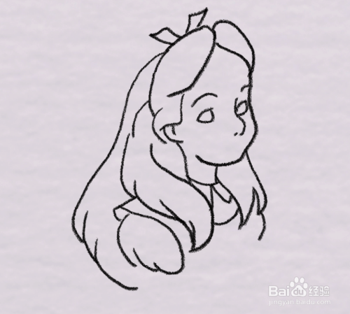 第一步,画Alice的头部脸型,和头发,她是中分发型