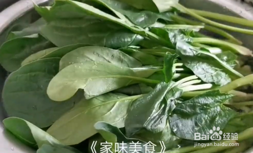 首先准备一斤菠菜,先把叶子摘下来,好之后把它清洗干净,锅中水烧开,加一勺盐,一勺食用油,然后放入菠菜焯水一分钟,然后把它放在盘中放凉备用。