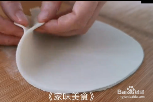 再准备三块钱的饺子皮就可以用来包饺子了,先把饺子皮擀大,