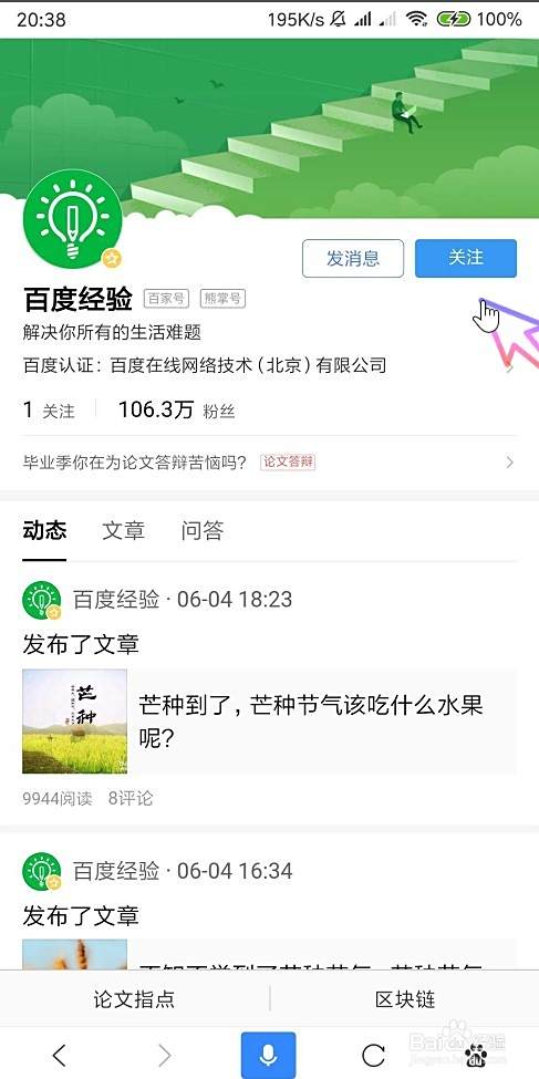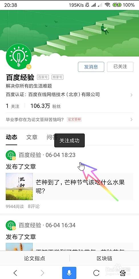 如果我们想要帮助自己喜欢的百家号作者的话,就点击右上角的关注图标,如下图所示,