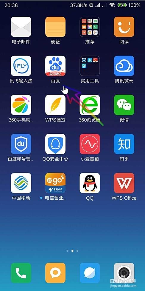 首先在手机的页面上找到手机百度,点击打开,如下图所示,