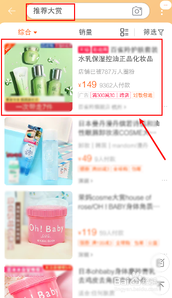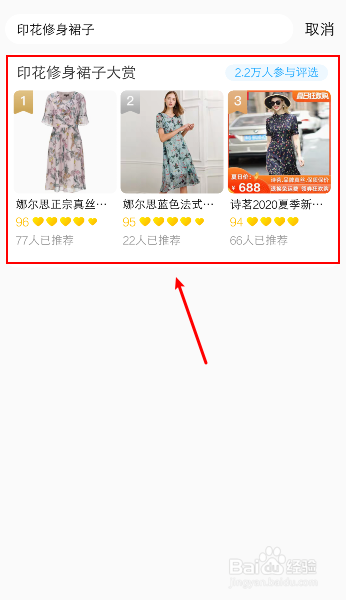 输入你要搜索的商品,比如:裙子,就会出现有好货推荐大赏的搜索结果。