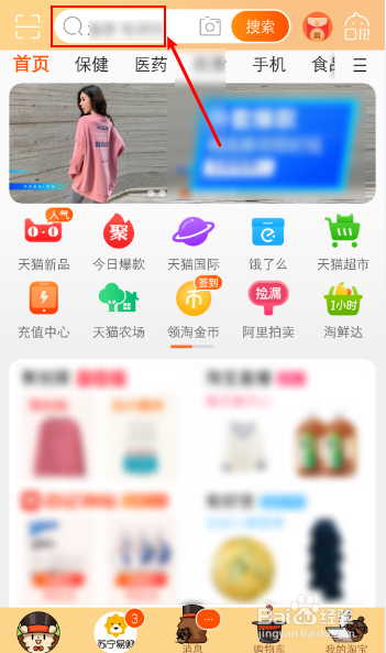 手机打开淘宝,在首页,点击上面的搜索,输入【推荐大赏】。