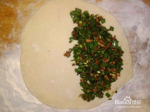 把面团搓揉一下,揪成小一点的面团,擀成圆形的面皮,然后放入馅料,合起把边上压紧。