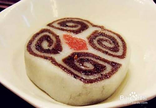 如意糕是用糯米粉,去壳芝麻制成的。形状是成两个圆筒相连的如意形,味道清凉爽口,吃起来感觉糯糯的。