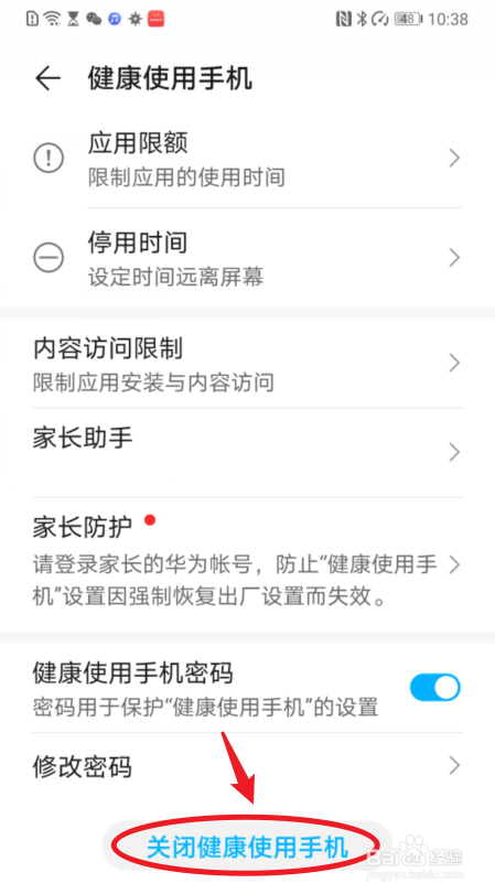 点击后,选择下方的【关闭健康使用】手机的选项 。