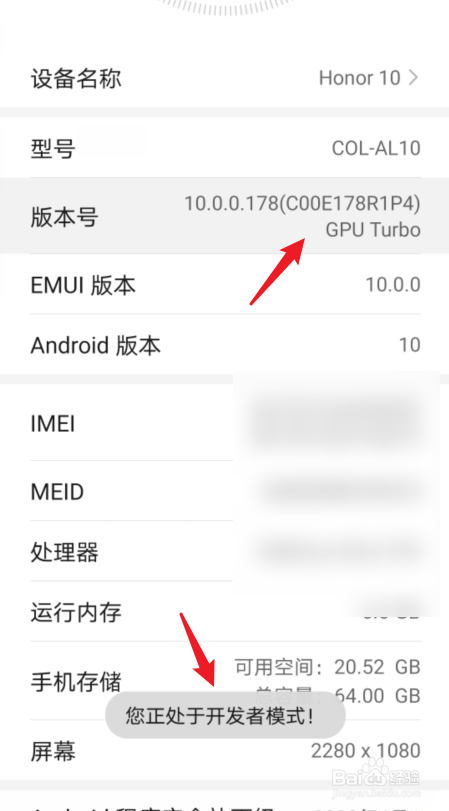 6.通过连续点击手机的版本号,即可开启开发者模式。