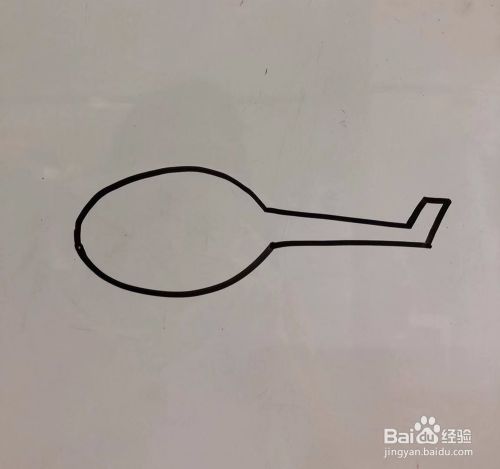 接着反方向画一条中间凸起来的曲线,合起来像一个一边没闭口的椭圆形;