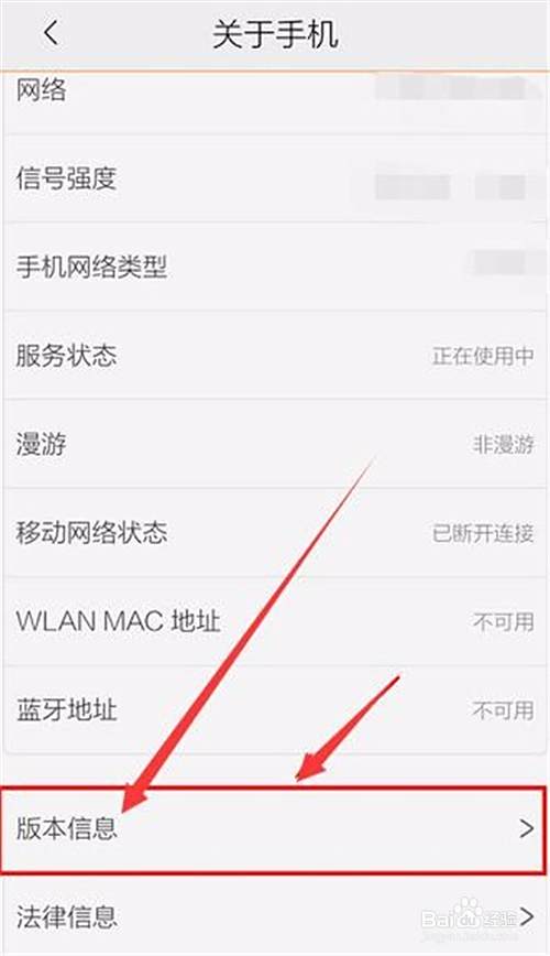 在这个页面中,继续手指向下滑动,找到【版本信息】,如图所示
