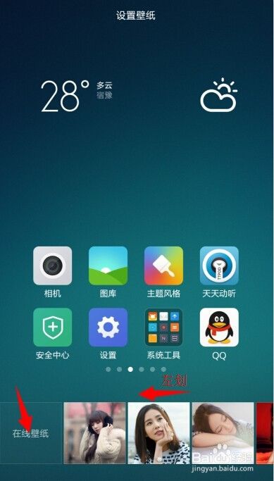 以前用安卓系统的手机更换壁纸的时候,会因为壁纸的尺寸大小不能跟手机屏幕相吻合,造成壁纸显示不能达到想要的效果。现在小米miui6系统,更换壁纸的功能里面,可以让你先预览效果,然后确定壁纸位置。我感觉很好用,在这里分享给大家。