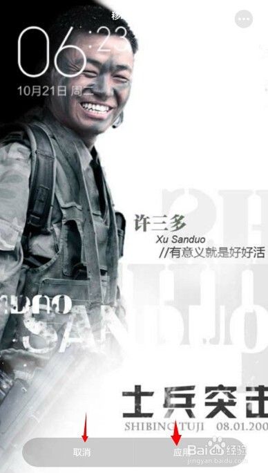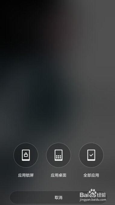 进入图库,我们可以在图库选择喜欢的照片,进入预览模式,如下图,我们看到下方有‘取消’‘应用’选项。我们可以点击照片空白处,可以看到如下效果,主页预览模式。这就是应用之后的效果图。同时我们还可以点住图片不放,可以左右滑动,调整图片在屏幕上的显示位置。