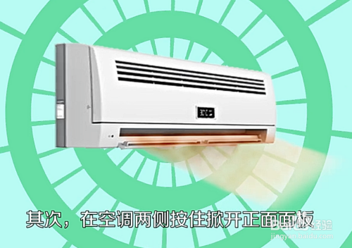 在空调两侧按住掀开正面面板。