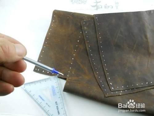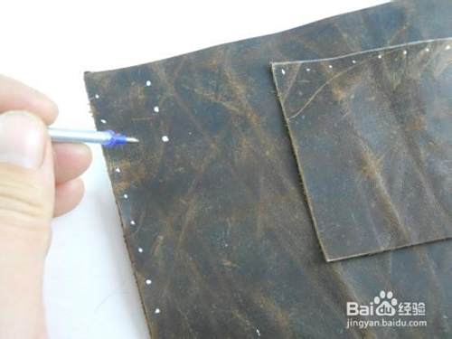 用银线笔在皮料上做标记,准备打孔。