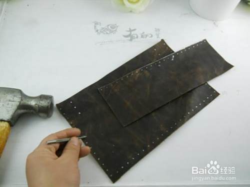 用冲子和锤子给皮料打孔!