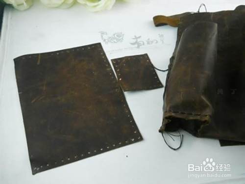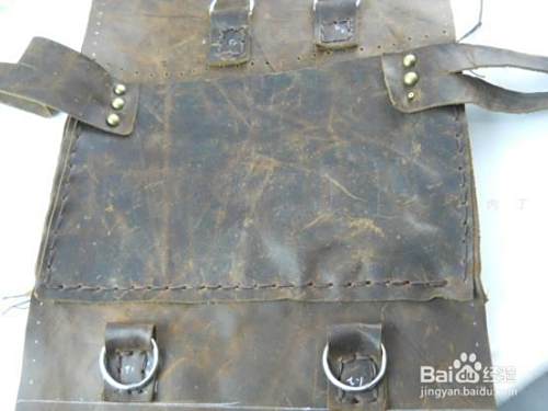 给包包中间部位安装金属环,用小长条皮子缝合上即可,比较结实。