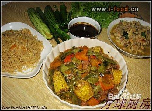 主料:玉米,豆角,南瓜,其实还可以放茄子和土豆的,可是家里人口少,放那么多材料吃不完的,原来我在饭店吃是和排骨一起炖的,现在排骨那么贵,我几乎吃不起,就放了点肉,吃多肉不好呢,只好自己这么安慰自己一下!