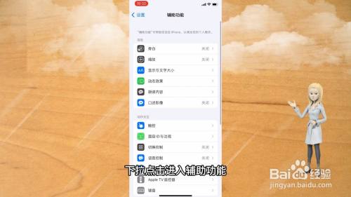 点击进入设置,下拉点击进入辅助功能,点击进入触控。