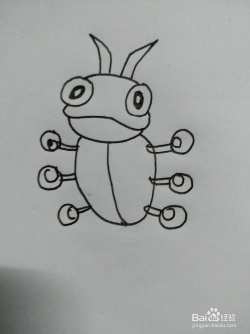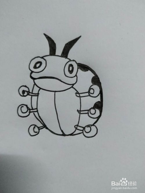 最后我们画上背部的壳,在壳上面画上黑色图案,将触角涂黑就完成了。