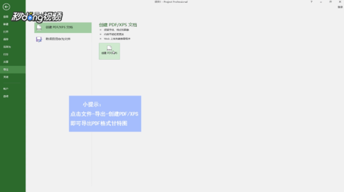 点击“文件”,点击“导出”,点击创建PDF/XPS,即可导出PDF格式甘特图。