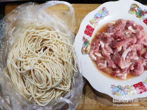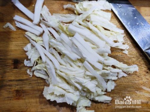 猪肉切成丝,放入适量生粉,倒入一点点料酒。