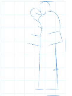 为新郎新娘的身体绘制指导线。为头部和各自的中心线绘制两个椭圆形。