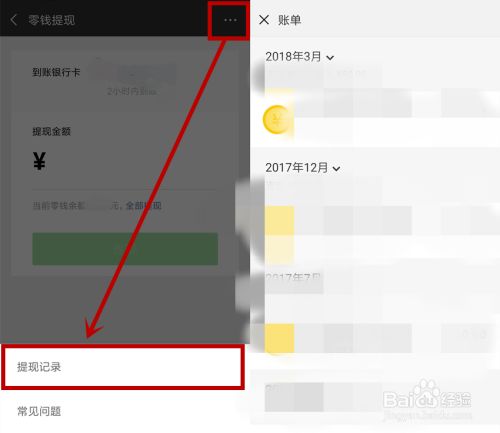 在打开的【零钱提现】界面点击右上角的【...】,然后选择再下方弹出的【提现记录】,这样就会出现详细的【账单】界面,让你查看