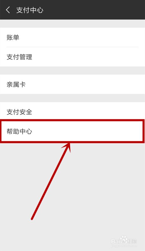 在打开的【支付中心】界面点击【帮助中心】选项
