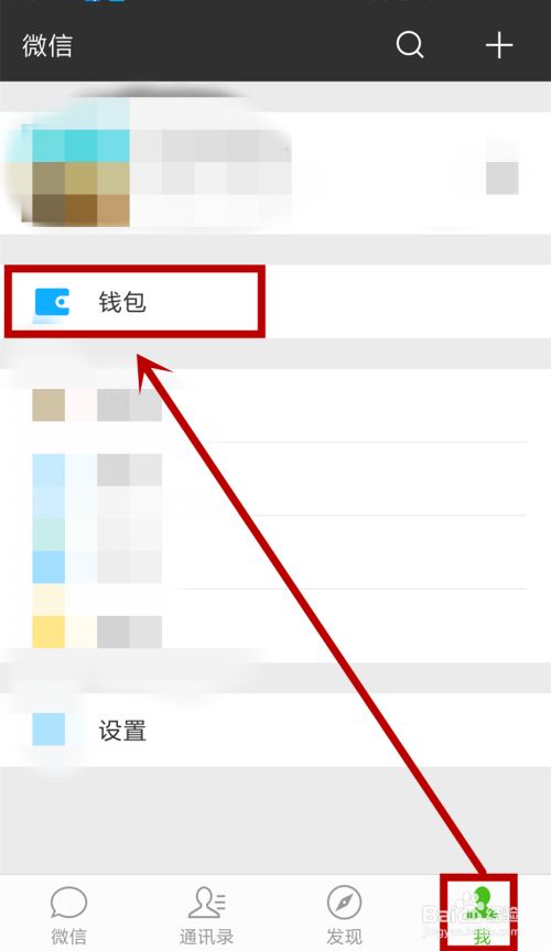 打开微信进入聊天页面后,点击右下角的【我】,然后点击【钱包】选项