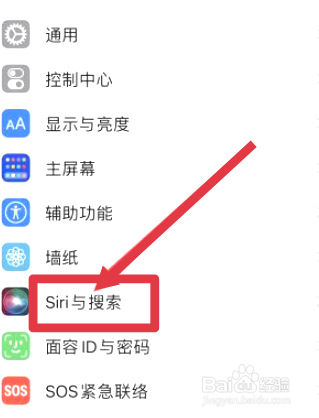打开iPhone手机设置页面,找到并进入siri和搜索。