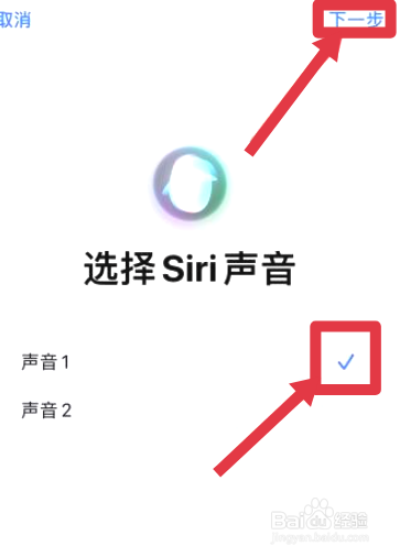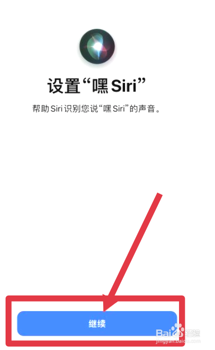 选择声音后点击继续,对着iPhone屏幕说嘿siri即可。
