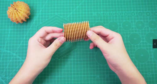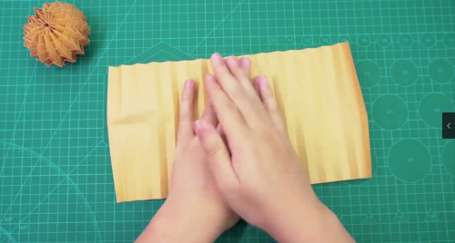 11翻到正面,沿着之前的折痕,从左向右,像折扇子一样折叠。