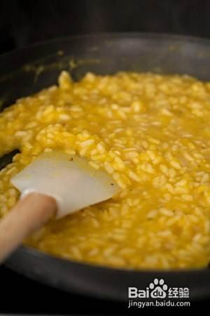 高汤在汤锅里加热,并确保在煮饭的过程中保持微沸的状态