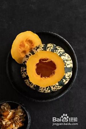 将南瓜顶部切去把籽挖净,蒸20分钟,至肉变软。