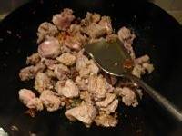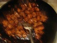 加入酱油和少量的糖和料酒,继续翻炒至排骨变金黄色。