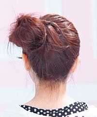 step2:将所有的头发全部集中到侧边,在靠近头顶的位子绑一个丸子头。