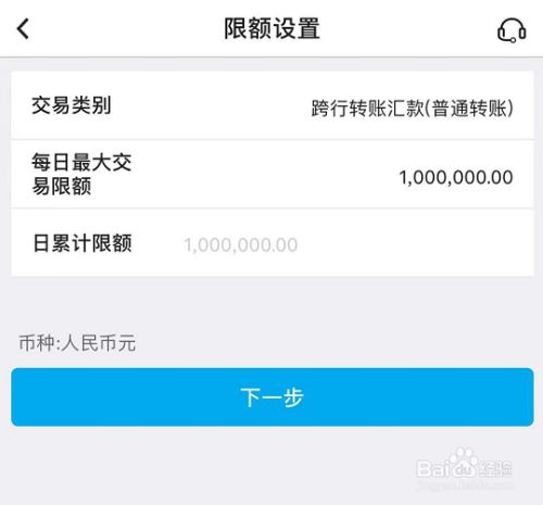 进入限额设置界面,在日累计限额里输入想更改或设置的数额后点击下一步