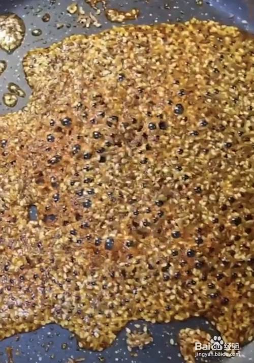 锅里留底油,加入芝麻,孜然粉,辣椒粉进去炒香。