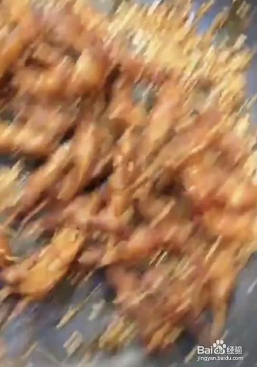 锅里放油,油热后把牙签肉放到锅里面去炸,金黄松脆后捞出。
