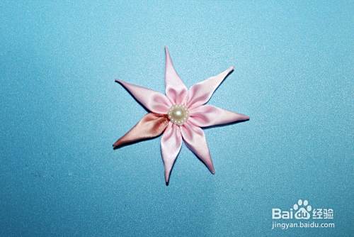 然后将七个花瓣都缝好,中间粘上珠子即可。